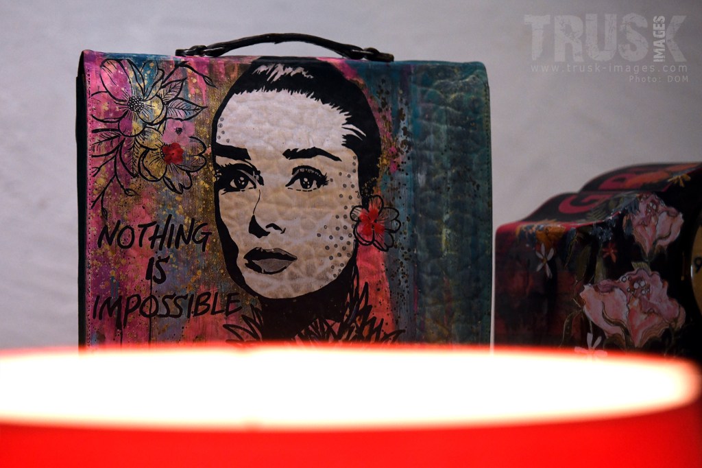 L’organisation m’a demandé de faire une petite démo pour montrer comment je créé mes pièces. Une valise ancienne relookée est née sous un meilleur jour et elle a de plus tout de suite trouvé un amoureux.