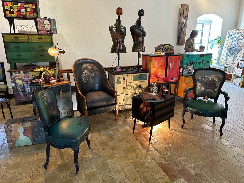 …et une de mes créations dans son nouvel espace – un fauteuil ancien relooké, dans une galerie