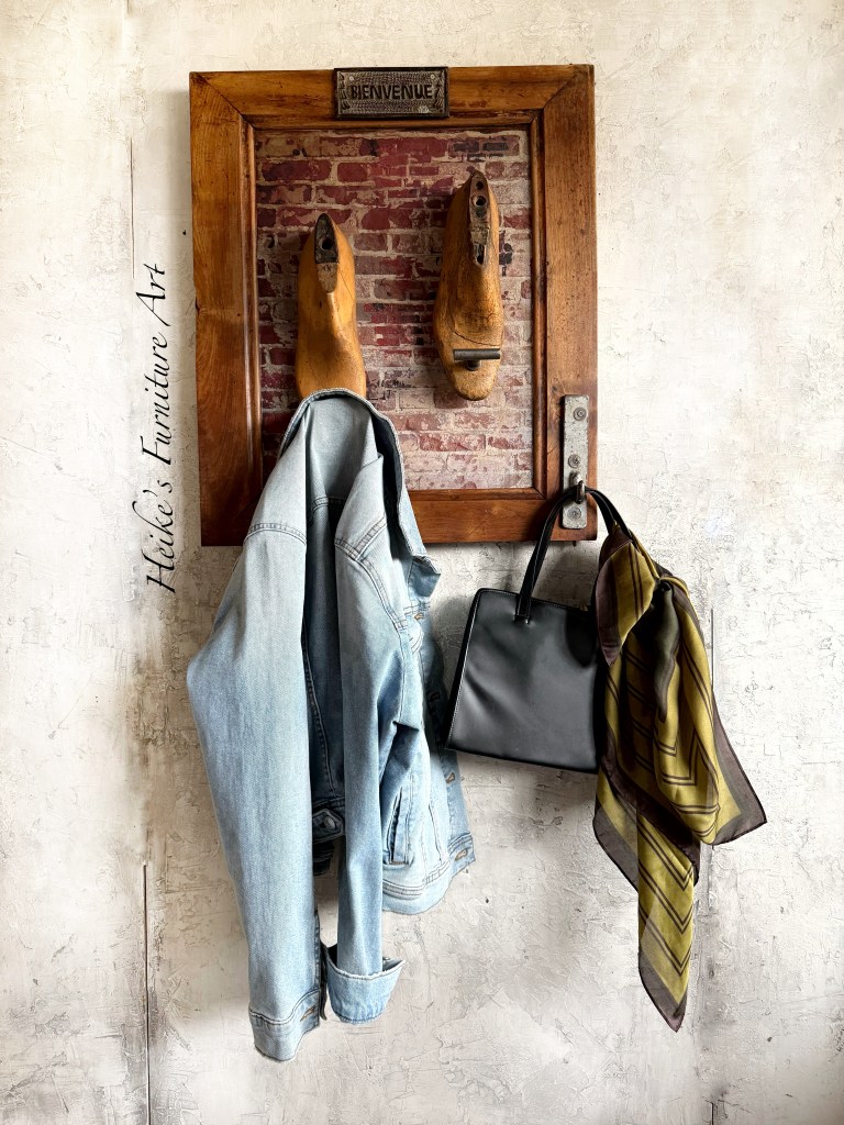 Art mural garderobe, garderobe originale, décoration murale design, porte manteau, embauchoirs, crochets murals, garderobe artisanale