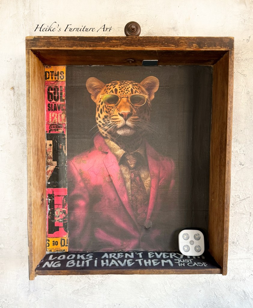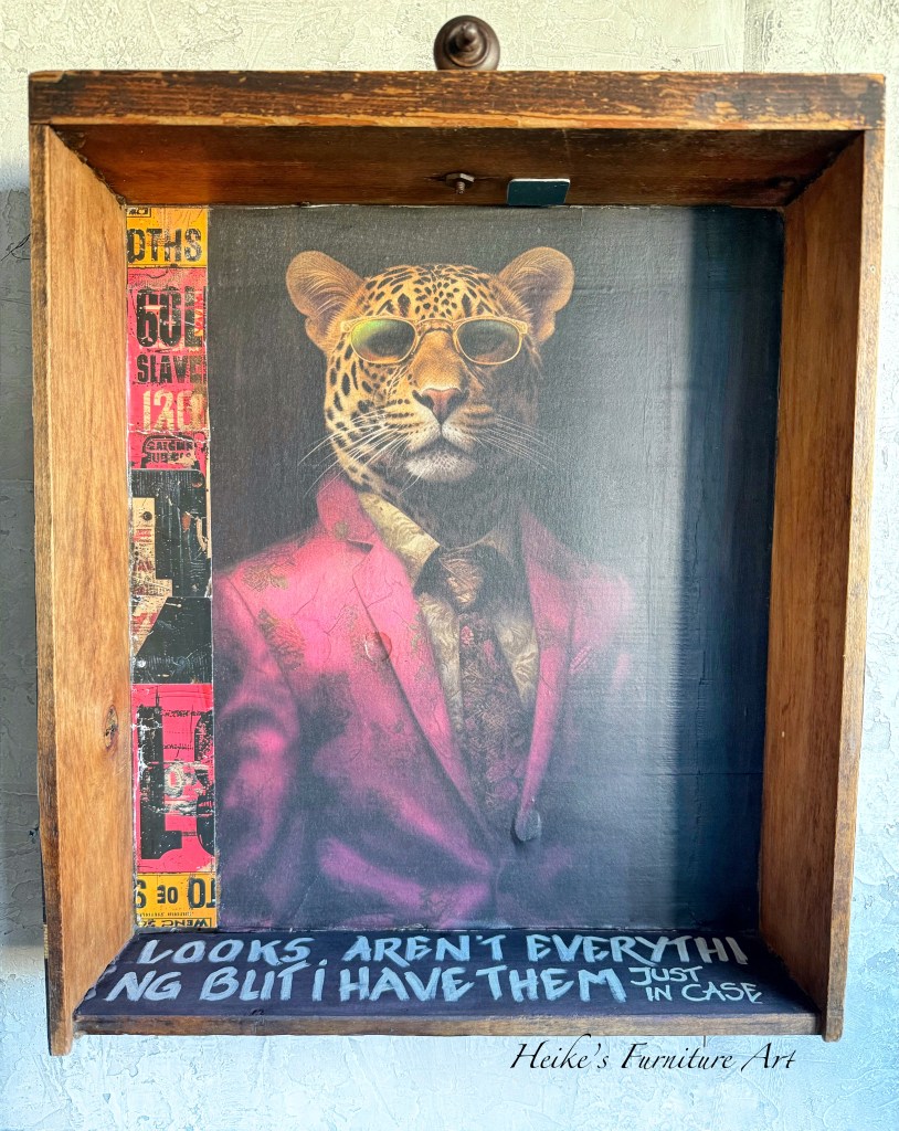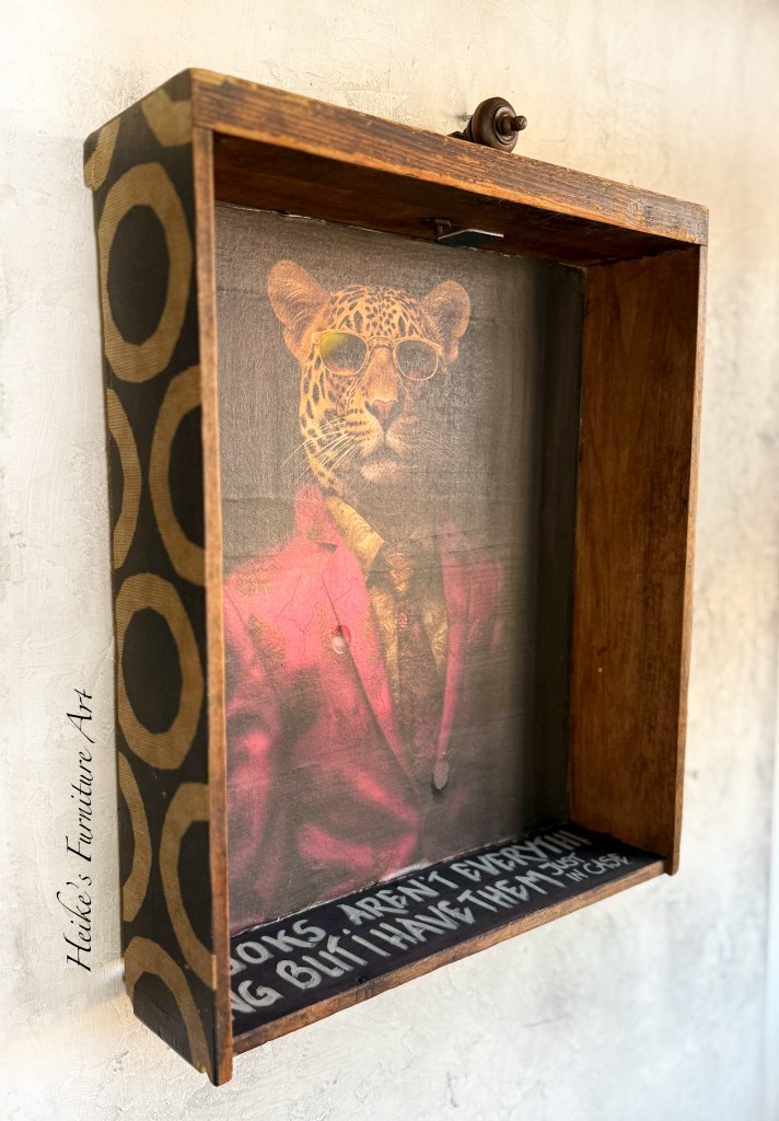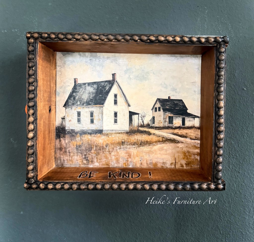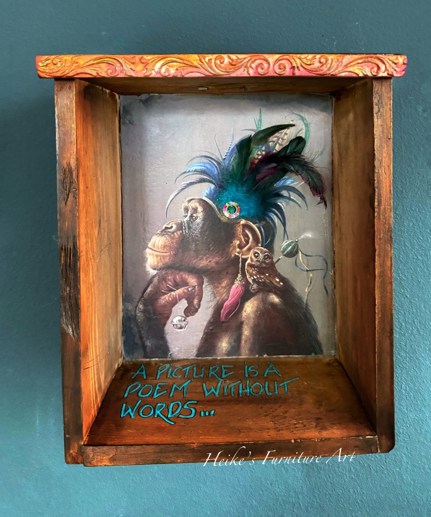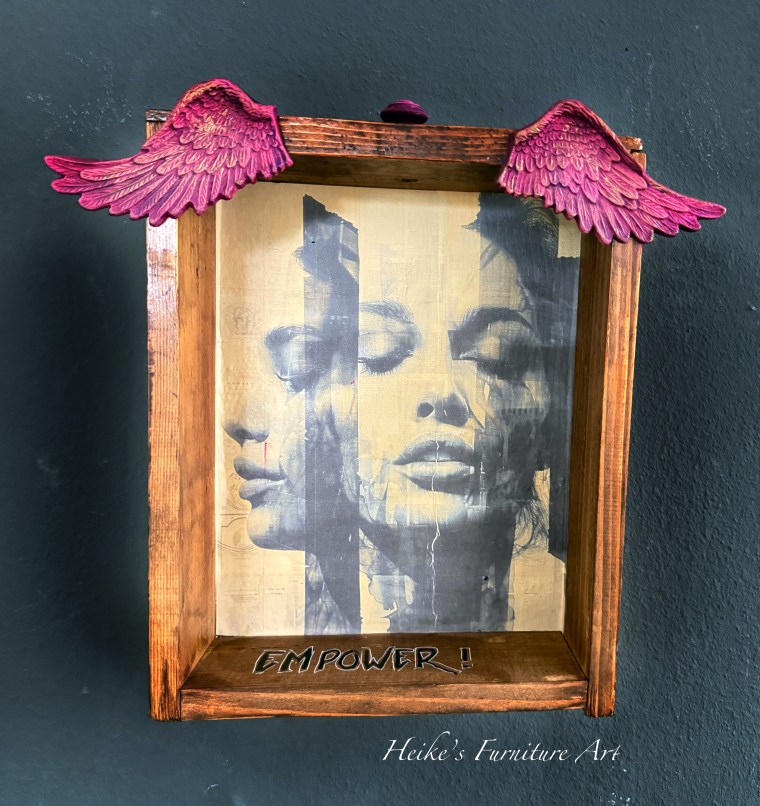 Décoration murale, ambiance décorative, tiroir rustique design, tableau sur bois, décoration murale design, toile d’art mixed media, moulure, boho