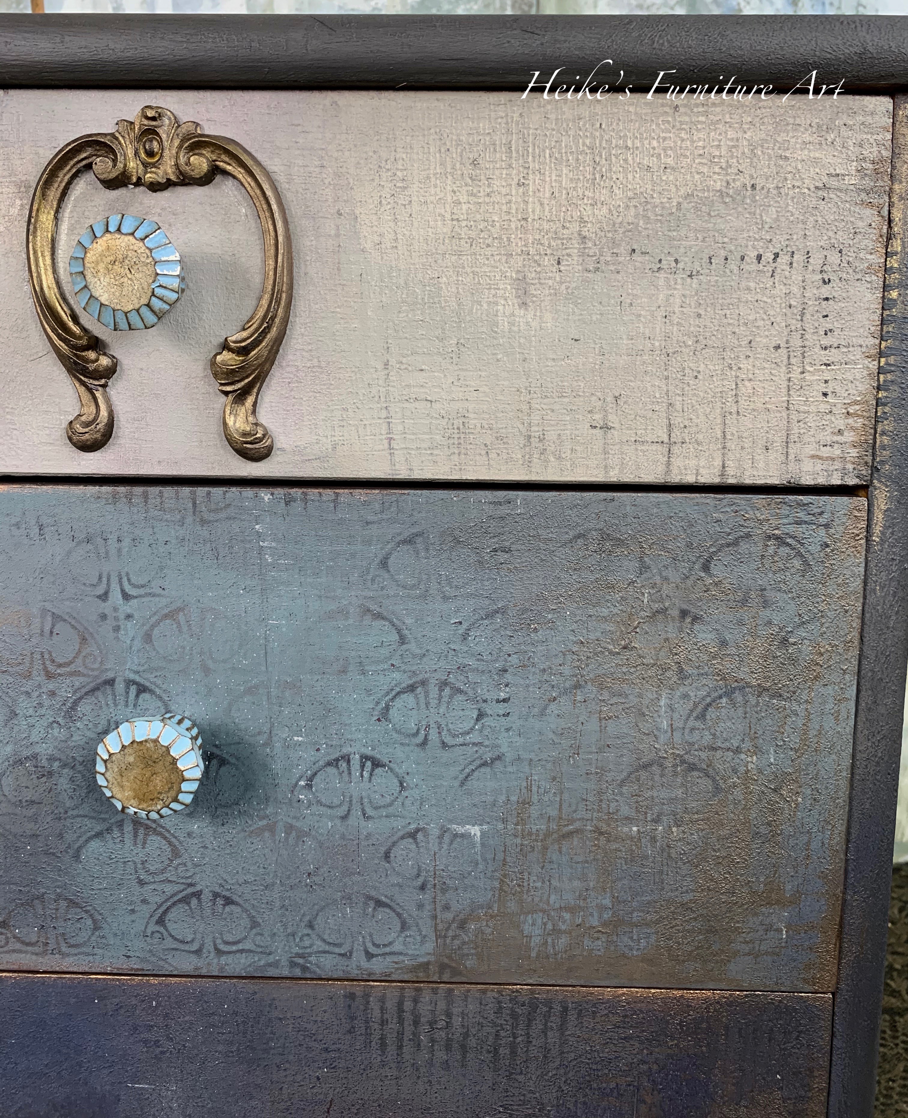Sometimes no colored wax or creative powder is needed to enhance the finish if you play with paint color layers on top of the stencil like below