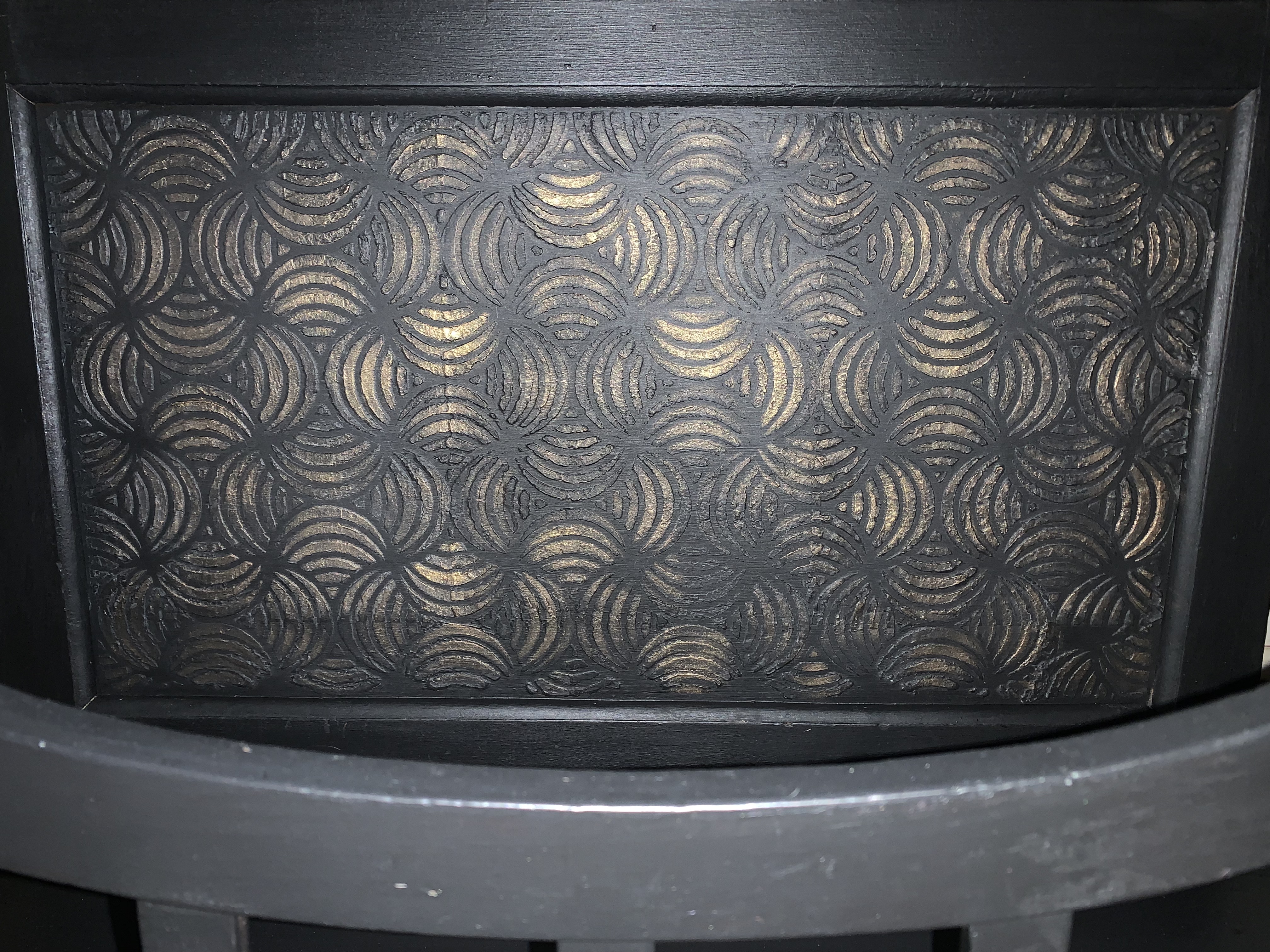 Hereโs another example of a high raised stencil I have done a while back. I think I did about 3 or 4 layers with joint compound. Make sure you let each layer dry and clean your stencil immediately after use, let dry before using it again. Give the design a quick light sanding to take off the peaks that might have been created and smooth it. Donโt overdo it because youโll thinnen the stencil design. The funny thing is whenever someone comes and sees this particular piece they touch the stencil. It’s so detailed and visible, people usually think it’s a mould.