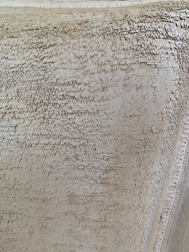 Let dry completely. Sand back any highpoints/ peaks and smooth out with a 220 grid sanding paper. You can now paint your piece and let it dry. Apply darker waxes or gilding waxes or paint to enhance the raised stencil.