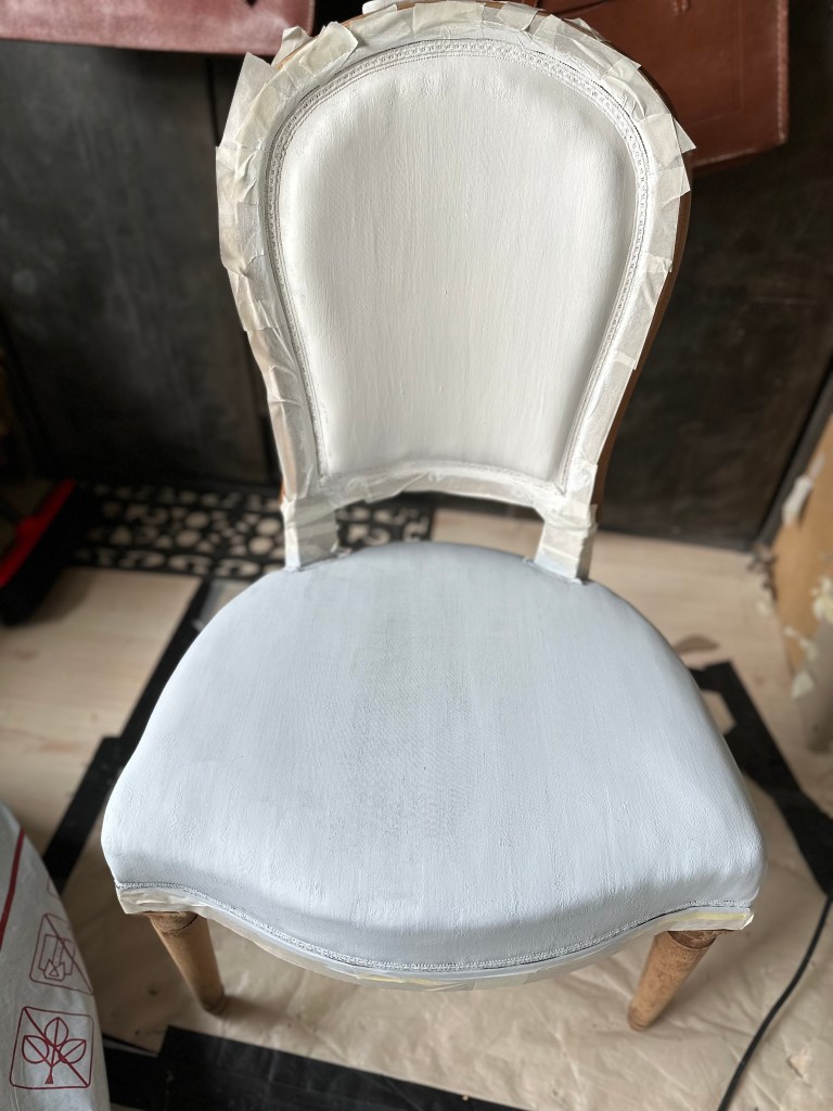 Here’s a few examples of painted chairs – fabric, leather, faux leather finish, vinyl