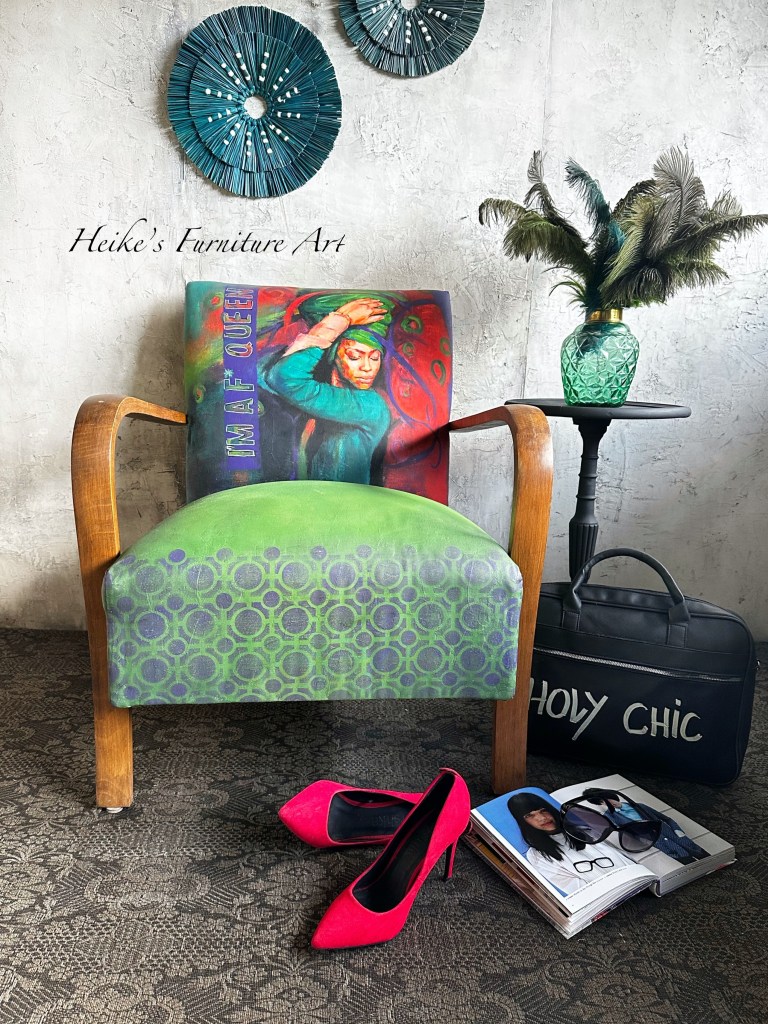 Un fauteuil vintage transformé en œuvre d’art. C’est mystérieux. C’est merveilleux. C’est unique en son genre à 100 %.