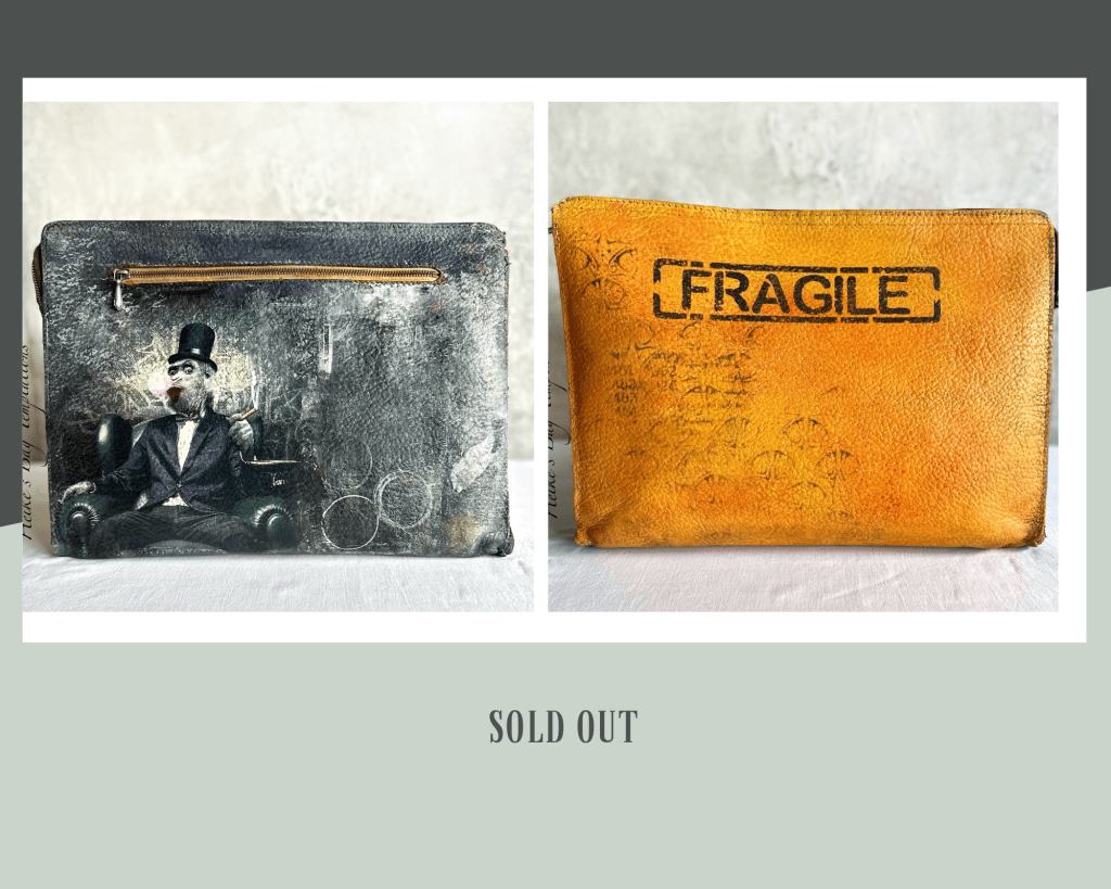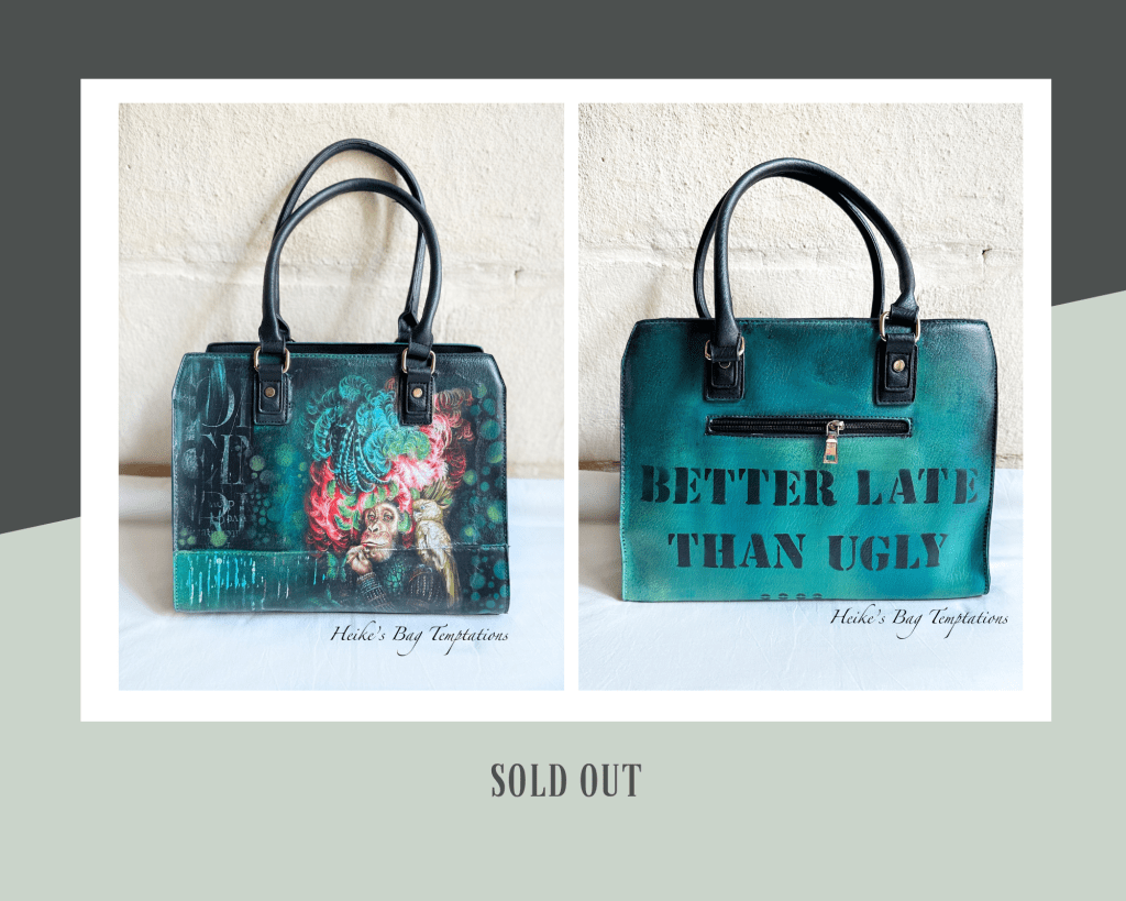 I put a lot of love and a tiny bit of madness into creating these bags. I’ve applied artistic finishing touches to bring you creations that are eclectic, quirky and out of the ordinary, but functional at the same time. I’m a fan of upcycling, I do it for my furniture so I do the same for my bags as long as I can find enough vintage and second hand items. I ship worldwide. Shipping costs vary depending on the weight and size. Customs clearance costs and/or VAT in your country are not included and have to be expected in addition.