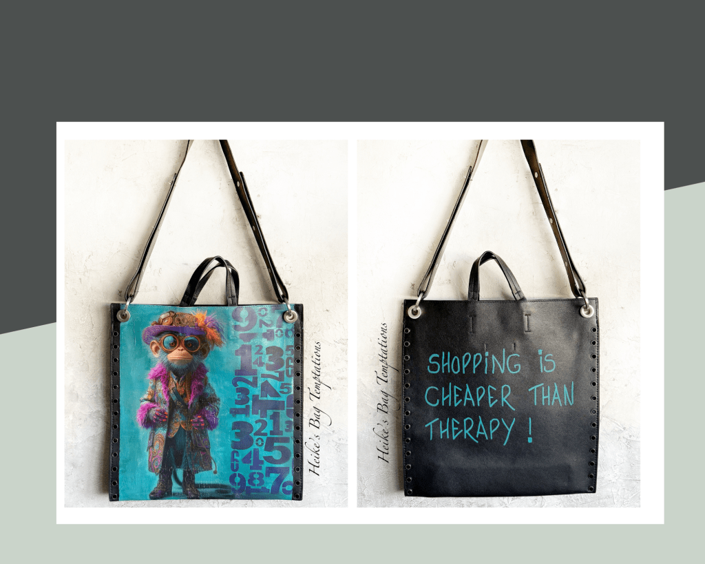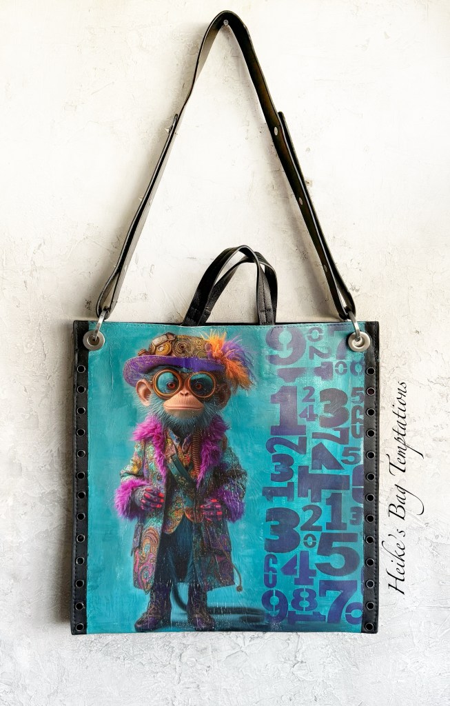 A contemplative monkey for you? This bag combines functionality with creative expression – perfect for art lovers and style enthusiasts alike.