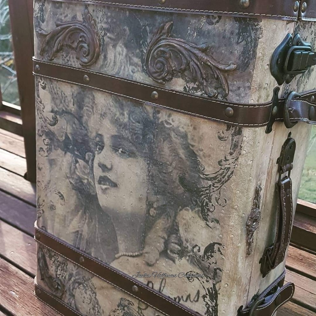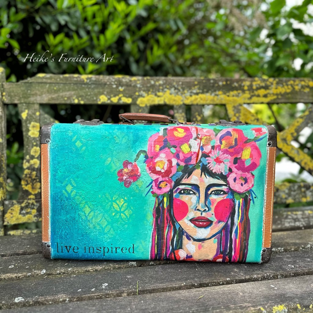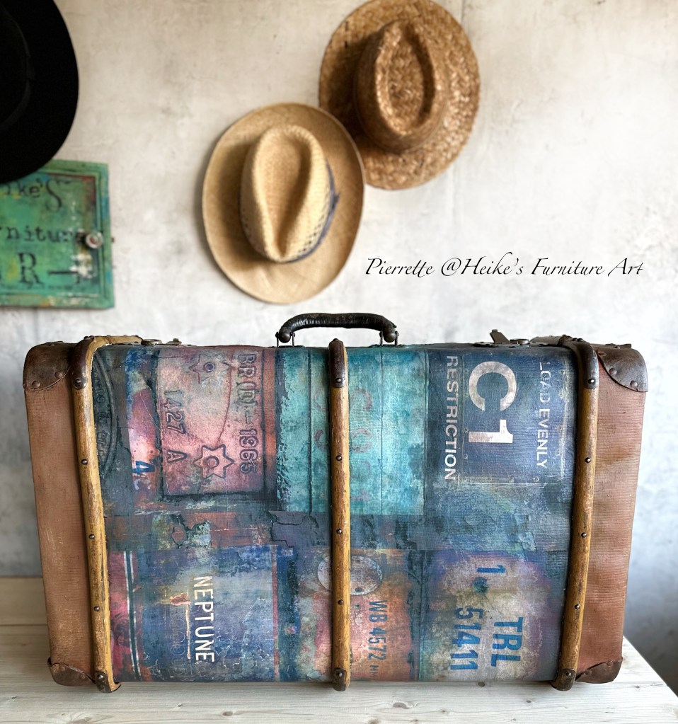 Vous apprenez des techniques qui vous permettent d’accomplir ce projet, de transformer et personnaliser la valise en quelque chose d’unique. Des textures, pochoirs, tampons, images et plus encore peuvent être démontrés et ensuite appliqués selon votre envie pour donner un style très personnel à votre valise. Attention: Nous travaillerons seulement sur l’extérieur de la valise non sur l’intérieur.