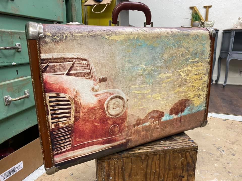 Quelques exemples pour vous donner une idée. *Pas toutes les valises ont été peintes par moi