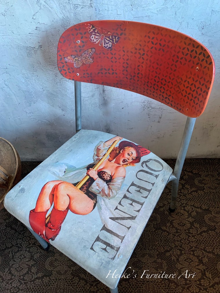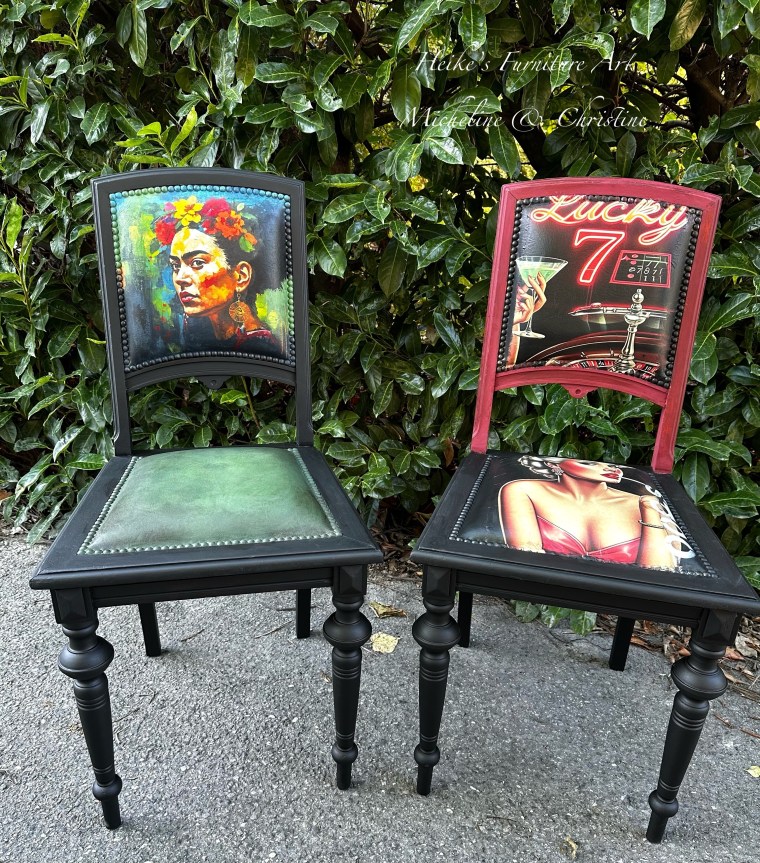 Conditions: Votre chaise doit être en bon état – nous ne faisons pas de réparations. Seule la partie du dos peut être en tissu – non l’assise! S’abstenir du velours ou du chenille. Peindre ce matériel là ne fonctionne pas! Tout autre matériel est normalement possible de peindre. Merci de m’envoyer une photo de la chaise au préalable pour voir la faisabilité sur une journée.